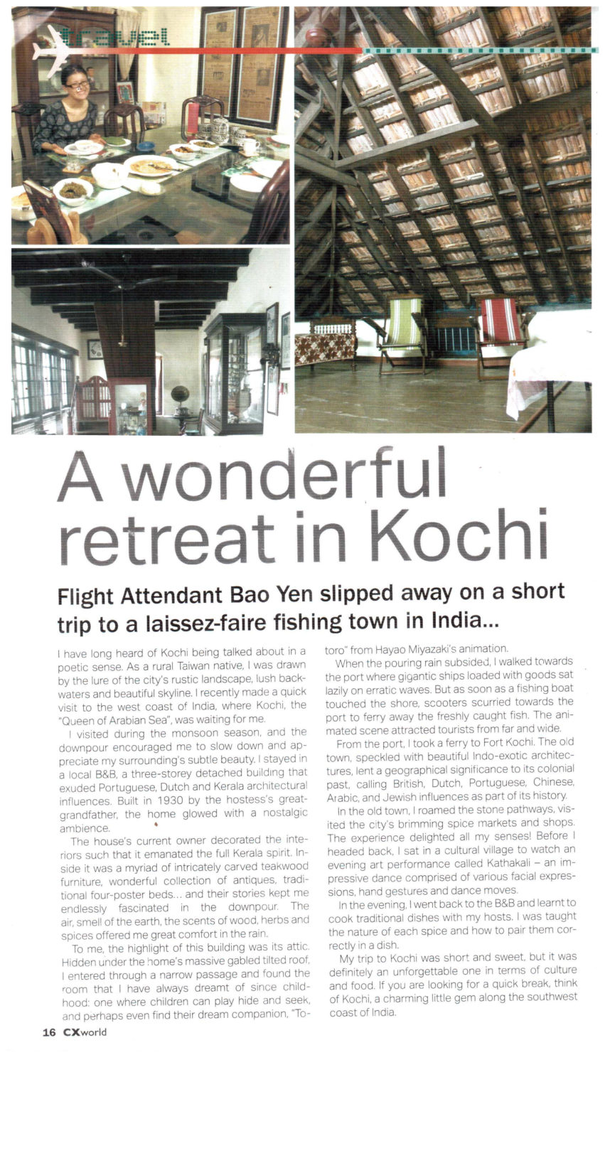 Press Reportclick on the icon for the full story.DNA Travel & LivingIndian Express Sunday MagazineManorama Traveler Page 1Manorama Traveler Page 2Manorama Traveler Page 3Manorama Traveler Page 4IndulgeCathay Pacific Inflight Magazine Awards
